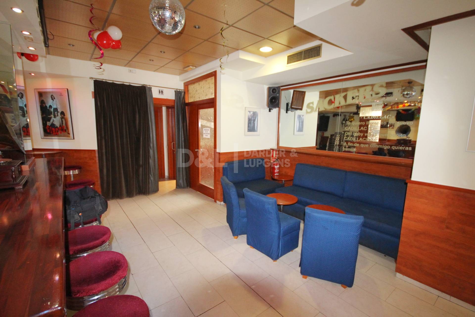 Local con licencia de sala de conciertos y pub musical. Con horario hasta las 5.00 AM. Sala climatizada, aislamientos acústicos, equipos de música. 3 Baños. Terraza. Todo montado.